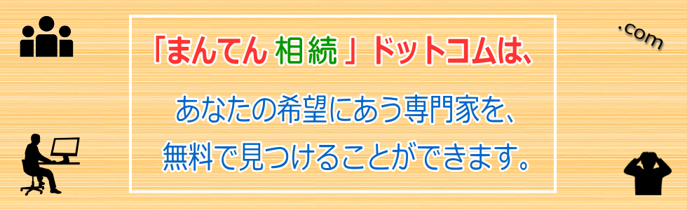 「まんてん相続ドットコム」は、日本全国から、あなたの希望にあう専門家(士業等)を、無料で見つけることができるサイトです。